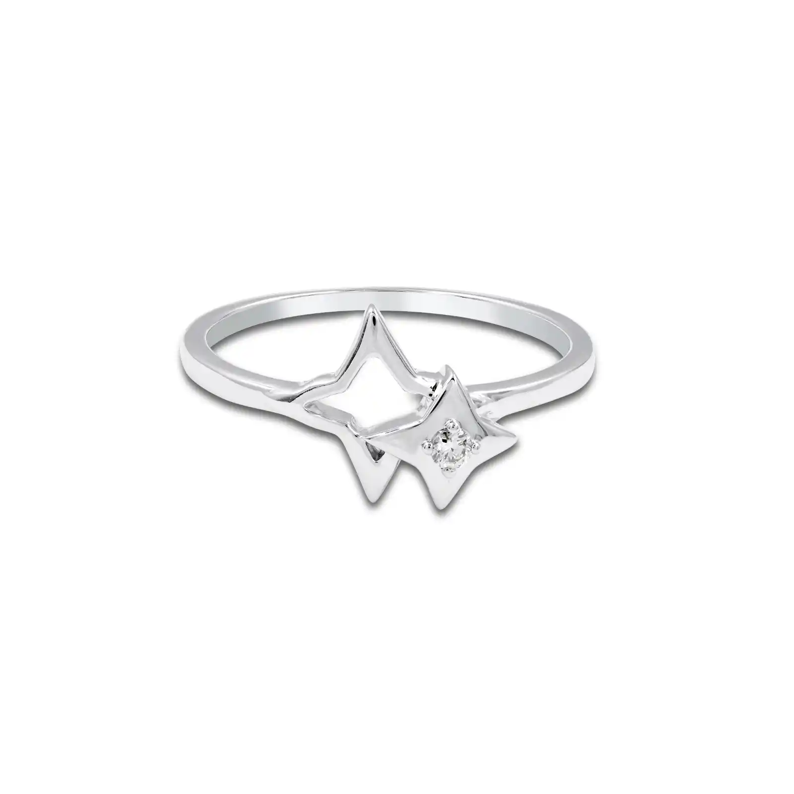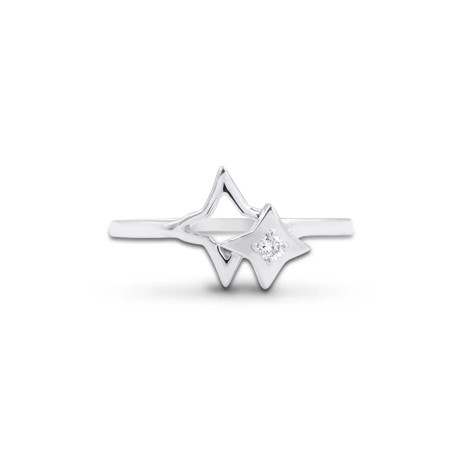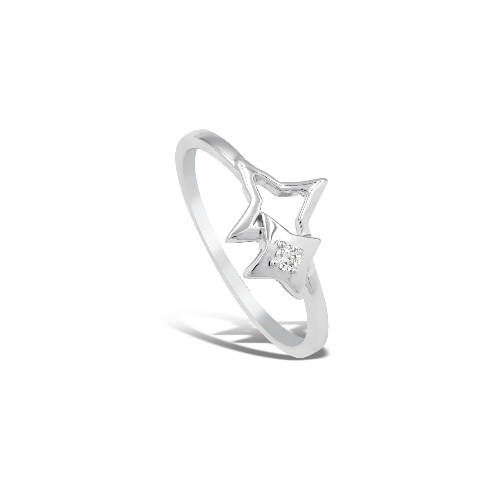 Nothing is impossible. Our Starlet Shimmers Diamond Ring offers a brilliant white gold with two stars. One larger and and the small one provides extra shine thanks to its sparkling diamond. With this on your finger you’ll never be without a guiding light even in your darkest moments.