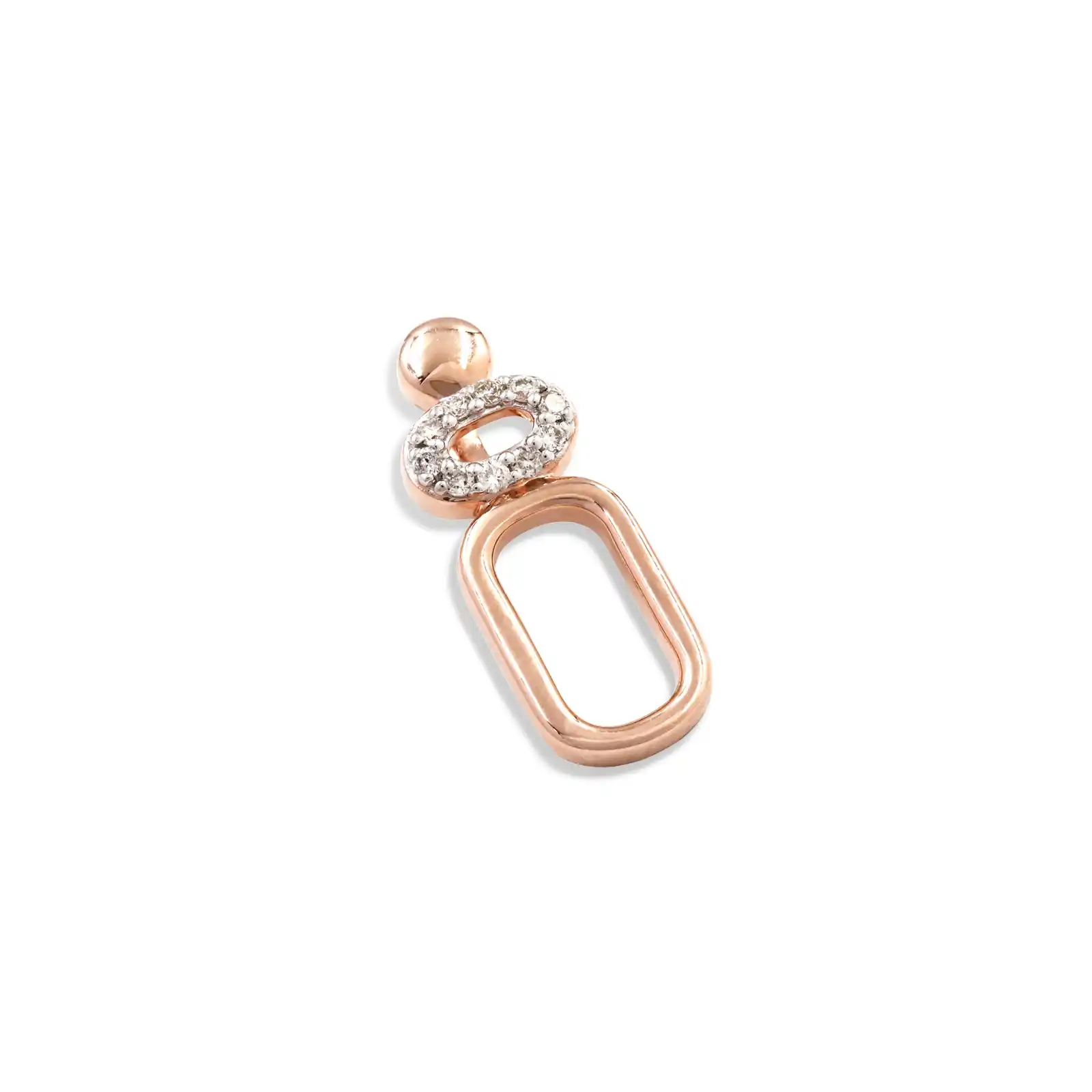 Our Geodesic Glow Diamond Pendant is one of the most symmetrically satisfying designs that we offer. This rose gold piece is shaped as an elongated oval with a diamond studded circle on top. Its shape looks similar to an i and serves as a great boost to a person’s self-worth because of it.