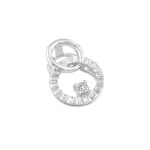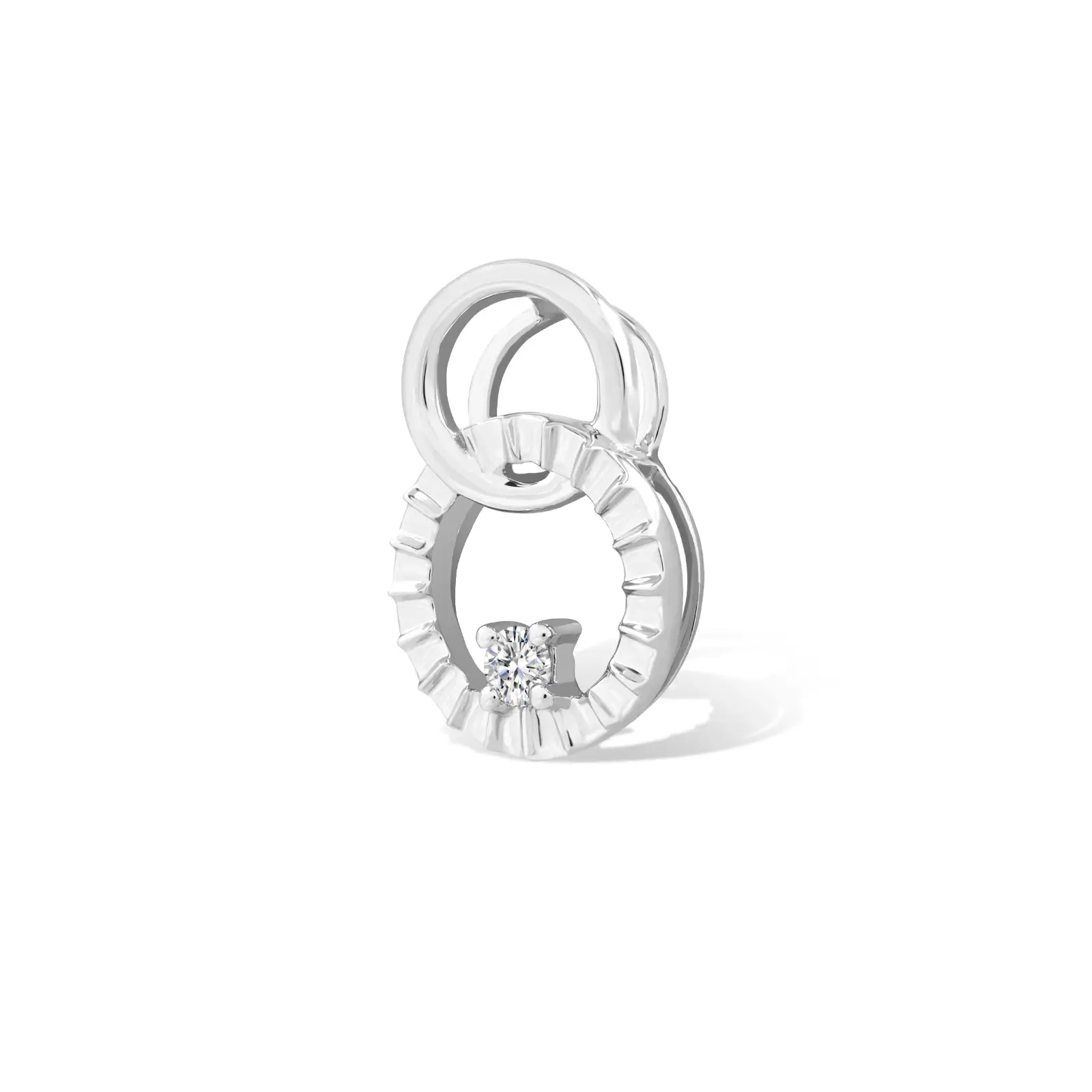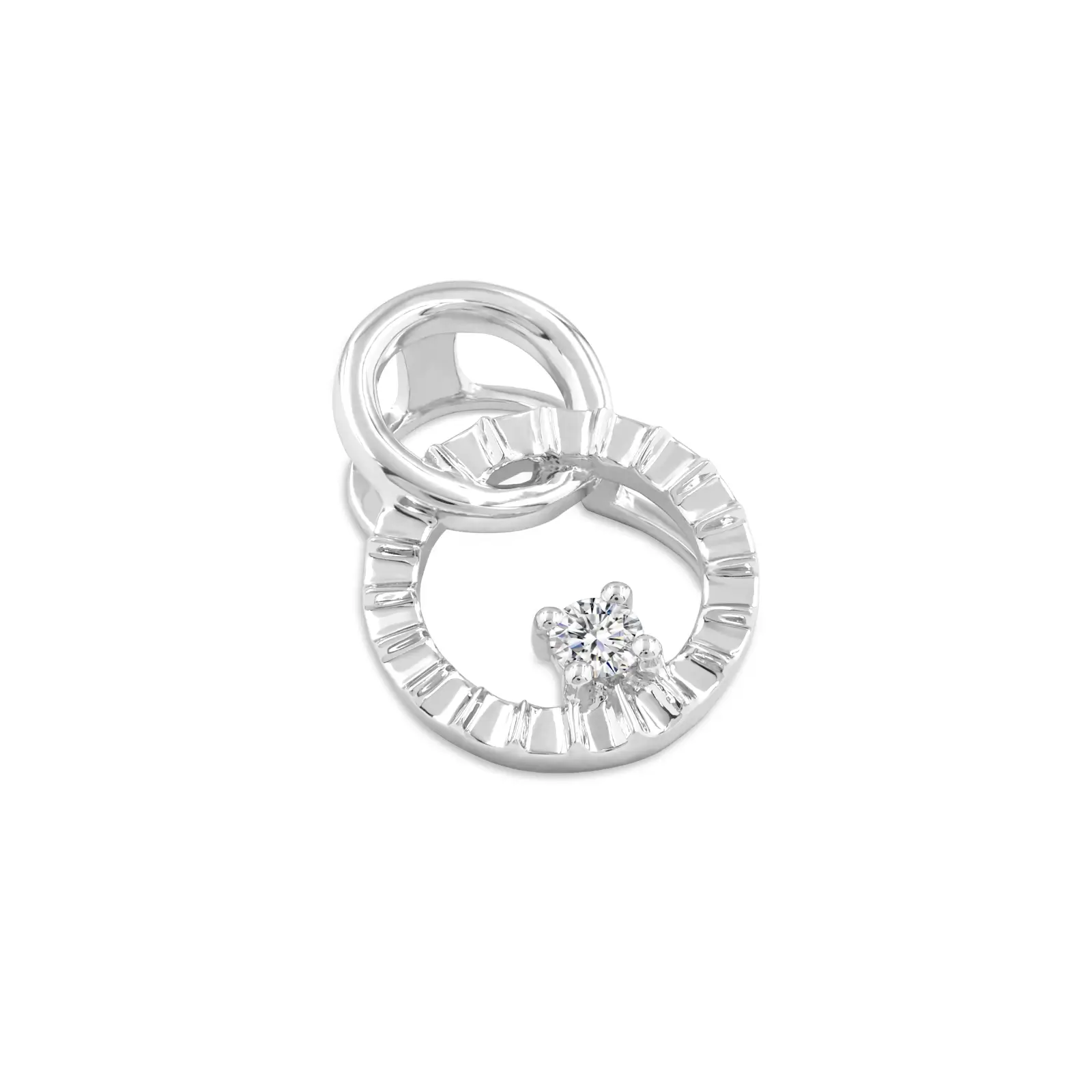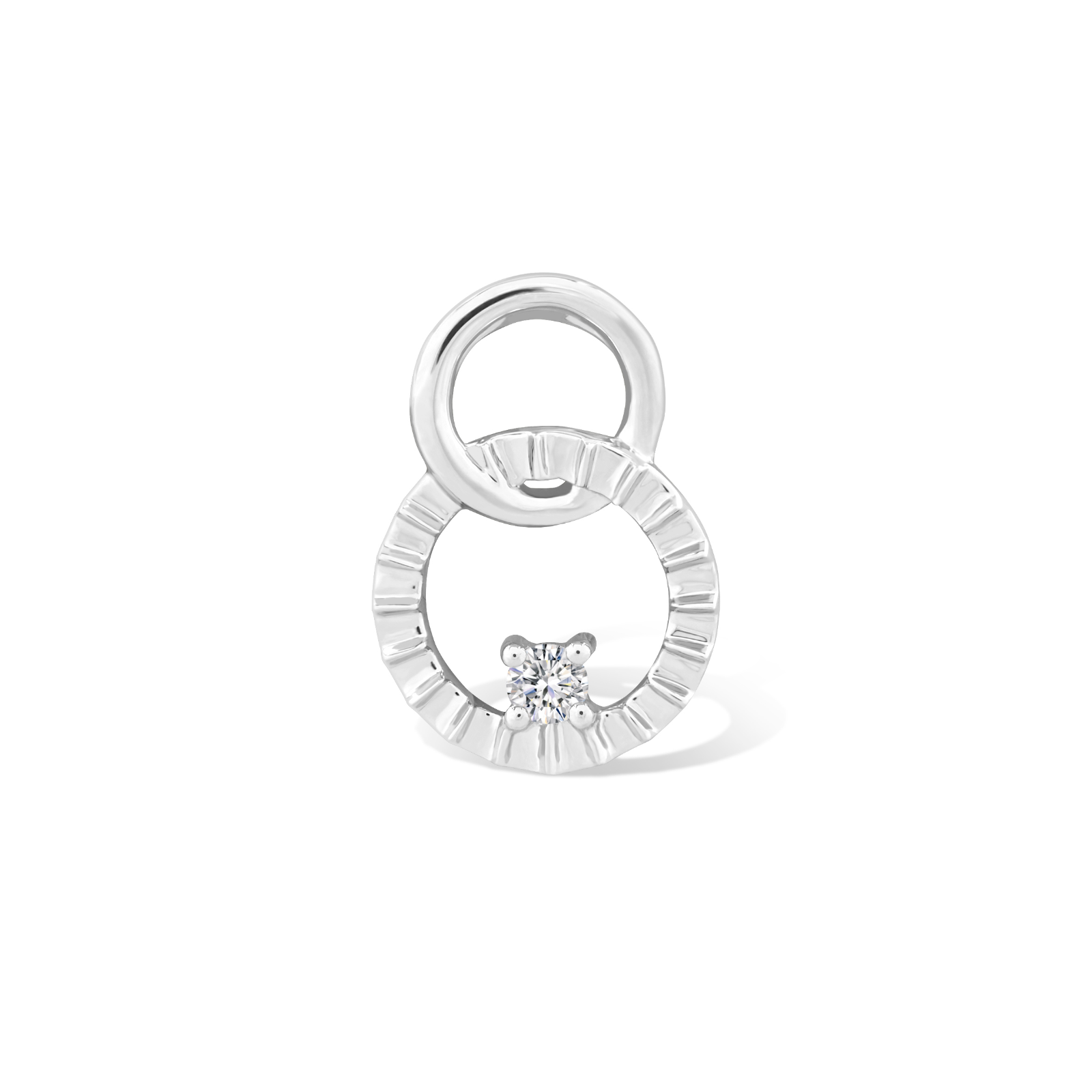 Our Radiant Circlet Diamond Pendant reminds us that we are stronger when united. This 9k white gold piece consists of a small smooth circle interlocking with a large textured circle rocking a diamond. It shows how beauty can be achieved from working together rather than being on our own.