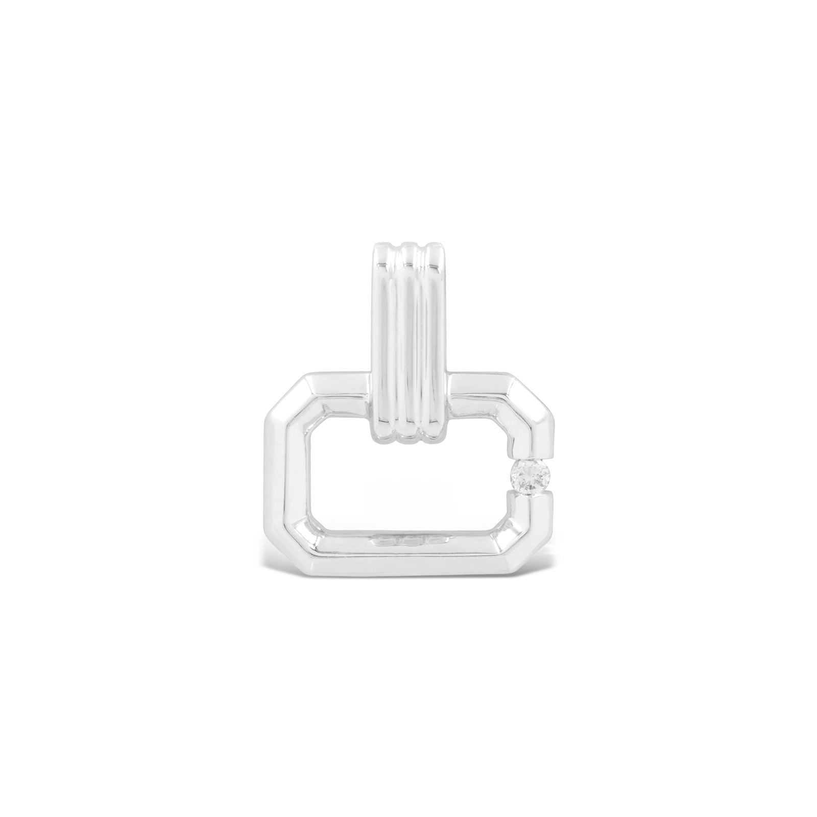If smooth is your style then our Sleek Rectangular Spark Diamond Pendant is going to fit you nicely. It is made with pristine white gold in a polished rectangular shape. One diamond stands out on its right while the hook is in a glossy oval shape. Go with the flow with this clean piece.