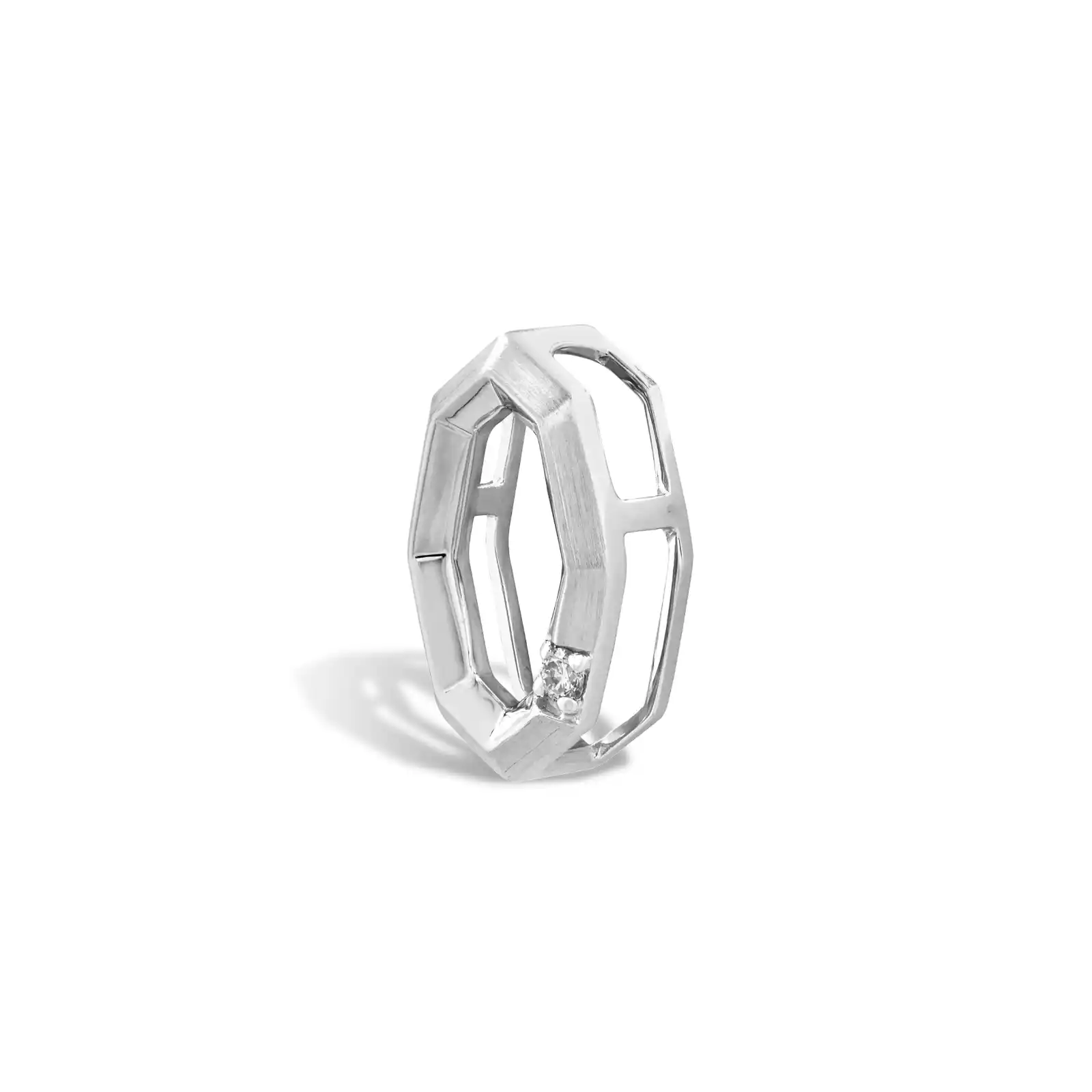 Our White Gold Octave Diamond Pendant shines brighter than anything else. This glowing white gold has been crafted into an eight-sided shape resembling a gemstone. A shimmering diamond can be seen on its bottom right offering even more brightness. Get sparkling with this elegant piece.