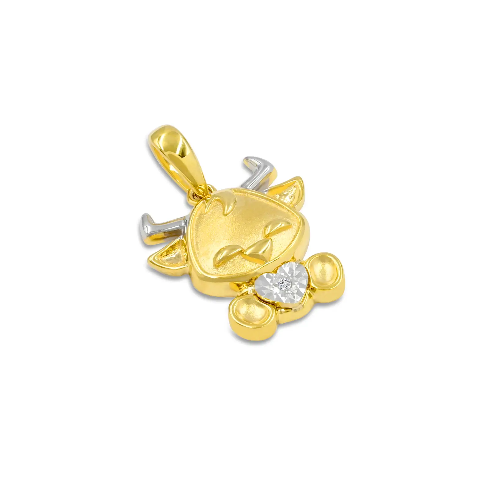 Sympathetic is our Guardian Ox Diamond Pendant. Proud of its number 2 status this yellow gold bovine is adorable in its design and its white gold horns add flair. With its love for others shown in the heart-shaped diamond the end product results in a celebration of the strong and brave.